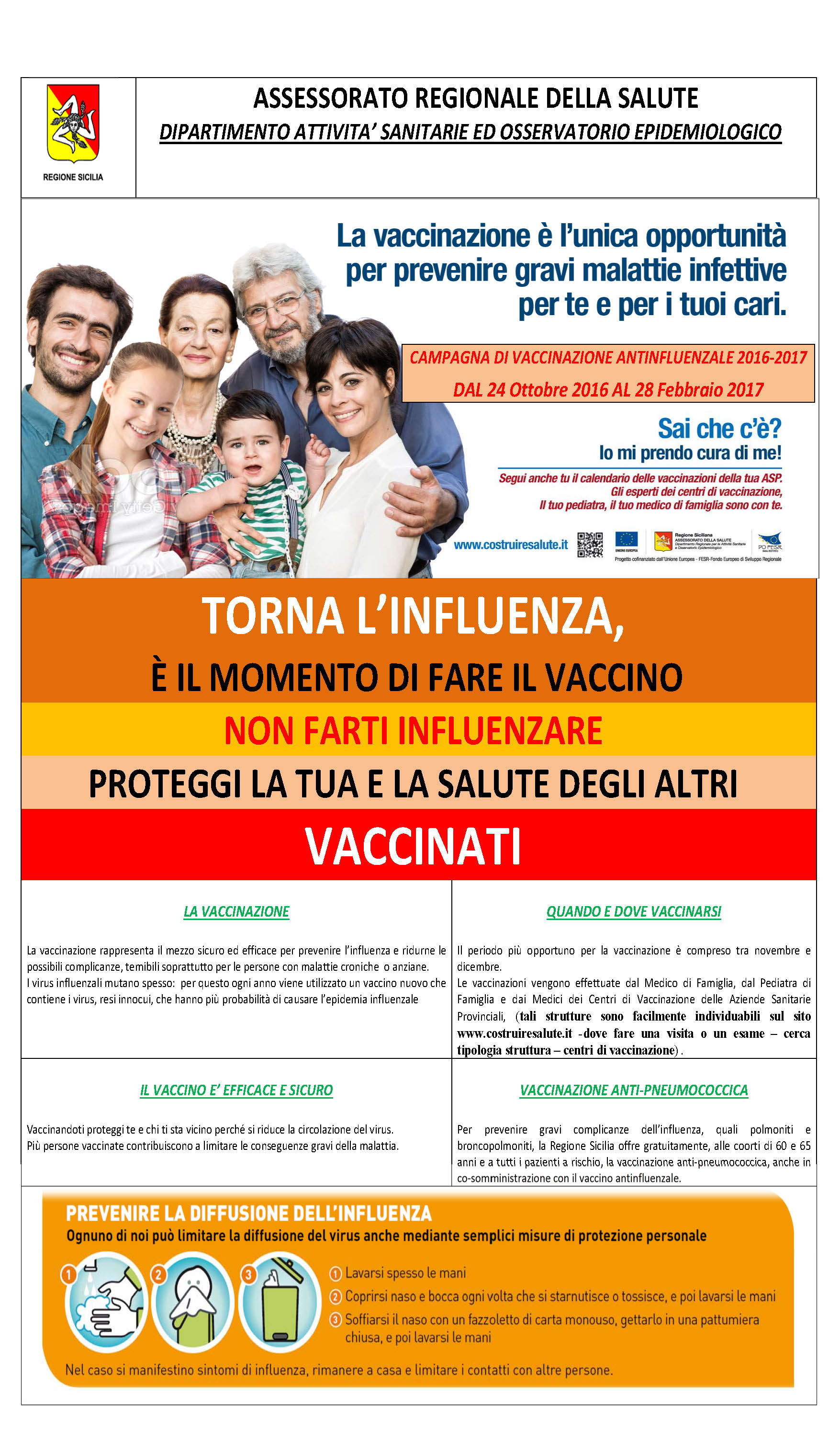 Sul territorio provinciale la campagna 2016-17, avviata nel mese di ottobre, ha registrato un incremento dell’adesione superiore del 5% rispetto all’anno precedente. Un dato positivo che tuttavia può essere ulteriormente migliorato. La campagna per la vaccinazione antinfluenzale si rivolge agli anziani sopra i 64 anni e a tutti i cittadini che, ancorché più giovani, sono affetti da patologie che li rendono più “fragili” (diabete, cardiopatie, broncopatie, malattie oncologiche, disturbi del sistema immunitario). Particolare attenzione è rivolta alle donne in gravidanza. La vaccinazione è raccomandata, inoltre, a tutti i cittadini che svolgono ruoli chiave nel sistema organizzativo e nel sistema sanitario.