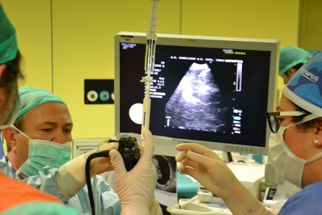 La procedura è eseguita in sala operatoria, con la collaborazione degli anestesisti dell’U.O. di Anestesia e Rianimazione con TIPO diretta dalla dott.ssa Maria Concetta Monea, e l’adeguatezza diagnostica dei prelievi (Rapid On Site Evaluation, ROSE) viene effettuata dall’équipe dell’Unità Operativa di Anatomia Patologica diretta dal dott. Filippo Fraggetta.