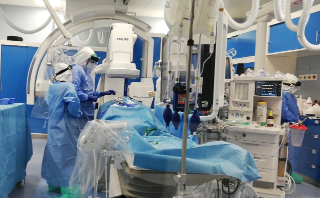 Il trasporto interno viene eseguito dal comitato provinciale di Catania della Croce Rossa Italiana tramite barella di biocontenimento, che azzera la possibilità di contaminazione lungo il percorso. In sala, la paziente è trattata dall’équipe composta dai neuroradiologi dott. Politi e dott.ssa Cavallaro, diretti dal primario prof. Concetto Cristaudo; l’anestesista dott. Cavallaro del gruppo della dott.ssa Maria Concetta Monea direttore di Anestesia e Rianimazione; l’infermiere Borgia, il tecnico di radiologia Montera della Neuroradiologia, l’infermiere Caruso del Pronto Soccorso diretto dal dott. Salvatore Mazza, due volontari della CRI: tutti gli operatori in assetto Covid, con presidi di protezione ad hoc forniti dal Servizio di Farmacia, grazie all’attenta gestione del direttore dott.ssa Agata La Rosa.