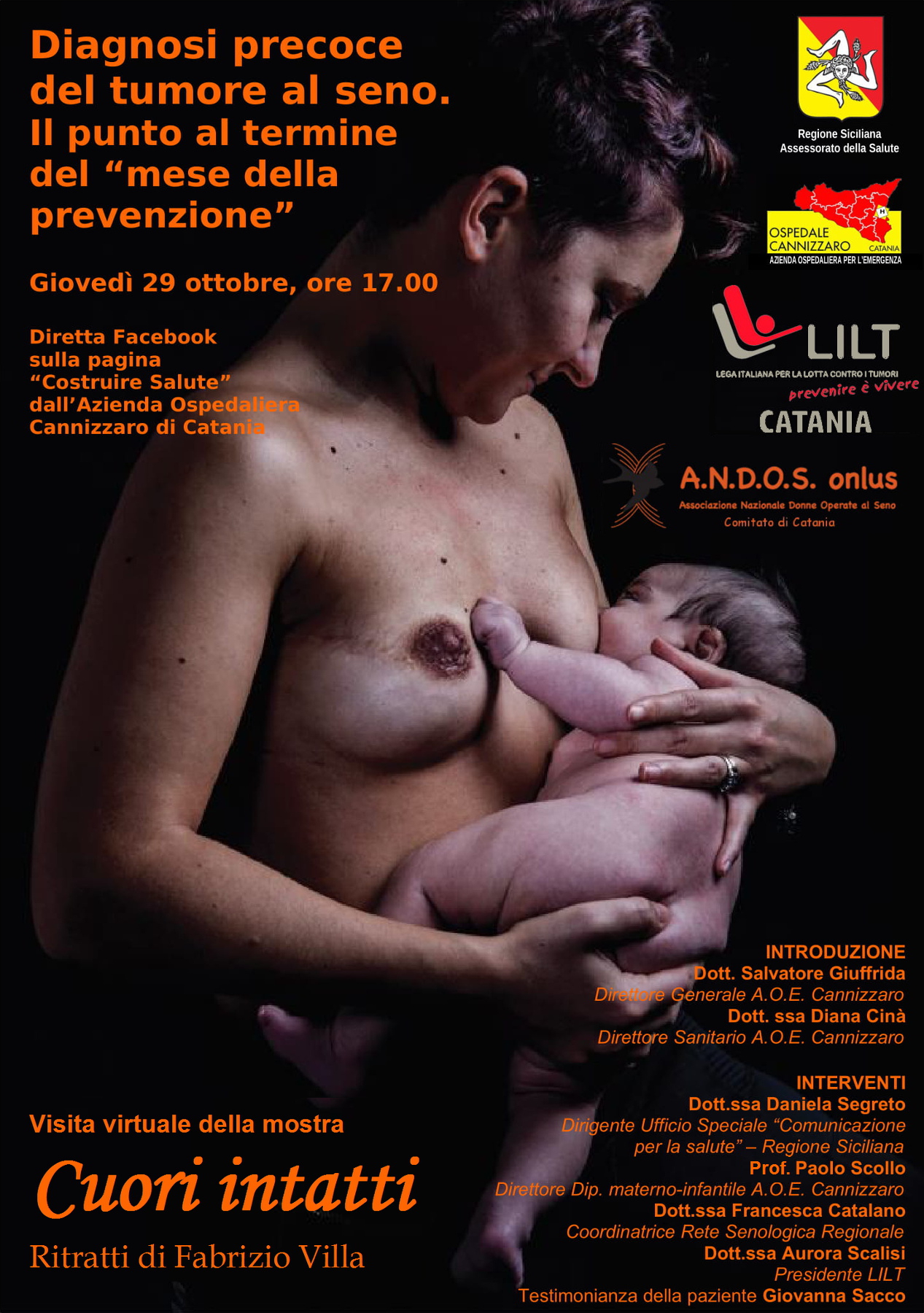 Sarà proposta una visita virtuale della mostra fotografica “Cuori Intatti” di Fabrizio Villa, realizzata dall’ANDOS, Associazione delle donne operate al seno.