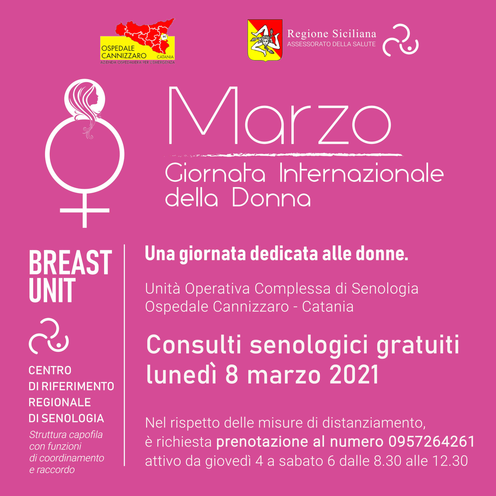 In occasione della Giornata internazionale della donna, lunedì prossimo la Senologia dell’Azienda Ospedaliera Cannizzaro di Catania offrirà consulti gratuiti volti alla prevenzione e all’informazione sul tumore al seno.
