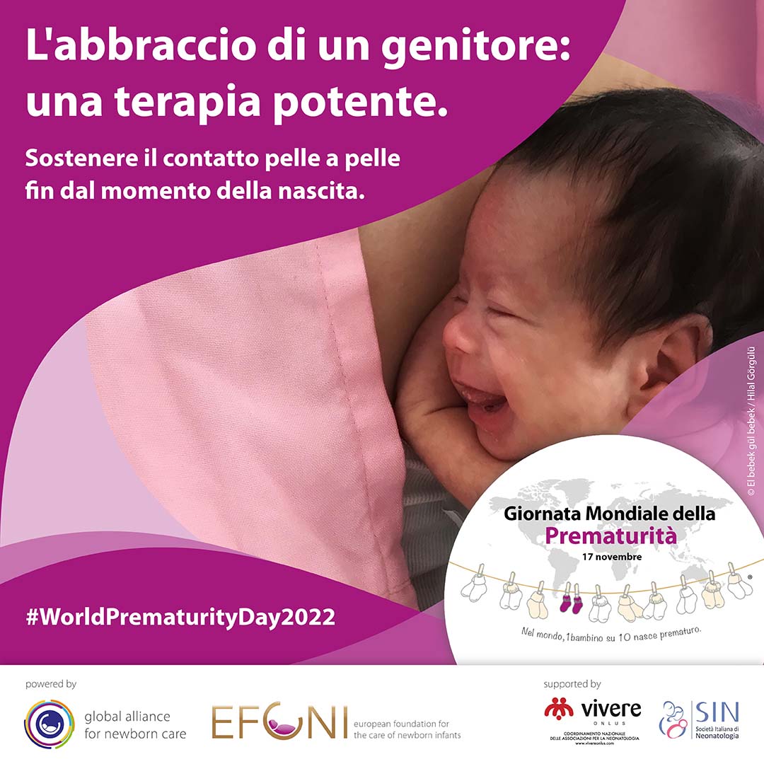 L'Azienda Cannizzaro aderisce alla campagna della Società Italiana Neonatologia e di Vivere Onlus, Coordinamento nazionale delle associazioni dei genitori, in occasione della Giornata Mondiale della Prematurità 2022. Il claim di questo anno è: “L’abbraccio di un genitore: una terapia potente. Sostenere il contatto pelle a pelle fin dal momento della nascita” ed è valorizzato, alla luce del contesto internazionale, non dall'accensione di luci viola in monumenti od ospedali, ma dalla presenza di elementi a tema nelle proprie risorse digitali, come questo sito.